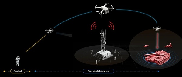 로렌츠 마이어 오테리온 최고경영자(CEO)에 따르면 이러한 전차들을 공격하는 데 사용되는 기술은 ‘최종단계(터미널) 유도(Terminal Guidance)’라고 하며, 스마트하고 완전 자율적인 드론 개발을 향한 첫걸음이다. 이 시스템은 드론이 전파교란으로 보호받고 있는 그 어떤 타격 대상이든 간에-전차든, 참호든, 군용 비행장이든-직접적으로 전파교란을 극복할 수 있게 해 준다.