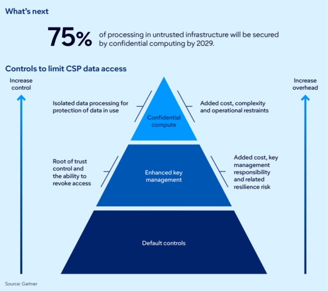 '기밀 컴퓨팅'은 데이터가 처리되는 중에도 외부에서 접근할 수 없도록 하드웨어 레벨에서 보호하는 기술이다. 클라우드 서비스 제공자(CSP)조차 데이터를 볼 수 없게 만드는 구조로, 민감 정보와 AI 모델을 클라우드에서 안전하게 쓰려는 기업에 필수가 되고 있다. 가트너는 2029년까지 '신뢰할 수 없는 환경'에서 처리되는 작업의 75%가 이 방식으로 보호될 것으로 봤다.