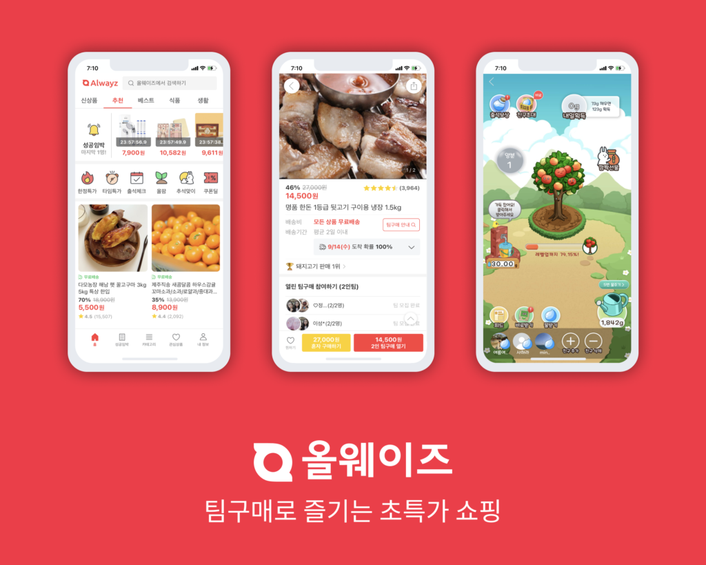 작년 9월 출시된 올웨이즈는 모바일 팀구매 커머스앱이다. 론칭 1년 만에 이용자 수 250만명, 누적 거래액 450억원을 돌파했다. 누적 투자액은 260억원을 넘어섰다.