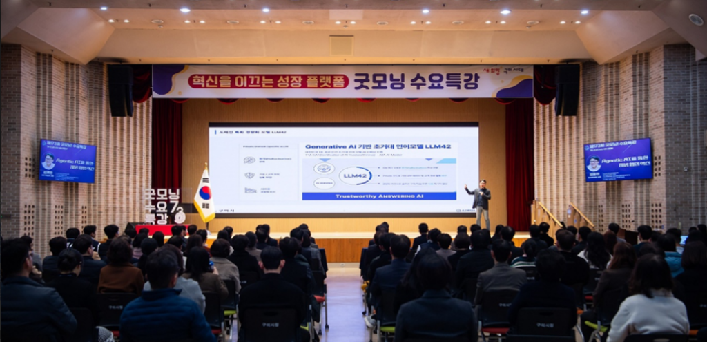 2026년 2월 25일 수요일 이른 아침, 구미시청 대강당 앞에는 평소와 다른 긴장감이 흘렀다. 150여 명의 공직자들이 강당을 채운 이유는 단순한 의무 교육이 아니었다. 그들은 자신의 업무 방식이 앞으로 어떻게 달라질지, 그 변화의 윤곽을 직접 확인하러 왔다. 단상에 오른 사람은 AI 스타트업 42Maru(포티투마루)의 김동환 대표. 그가 꺼낸 첫마디는 묵직했다. "이제 AI가 답변을 드리는 시대가 아닙니다. AI가 알아서 일을 처리하는 시대가 왔습니다."