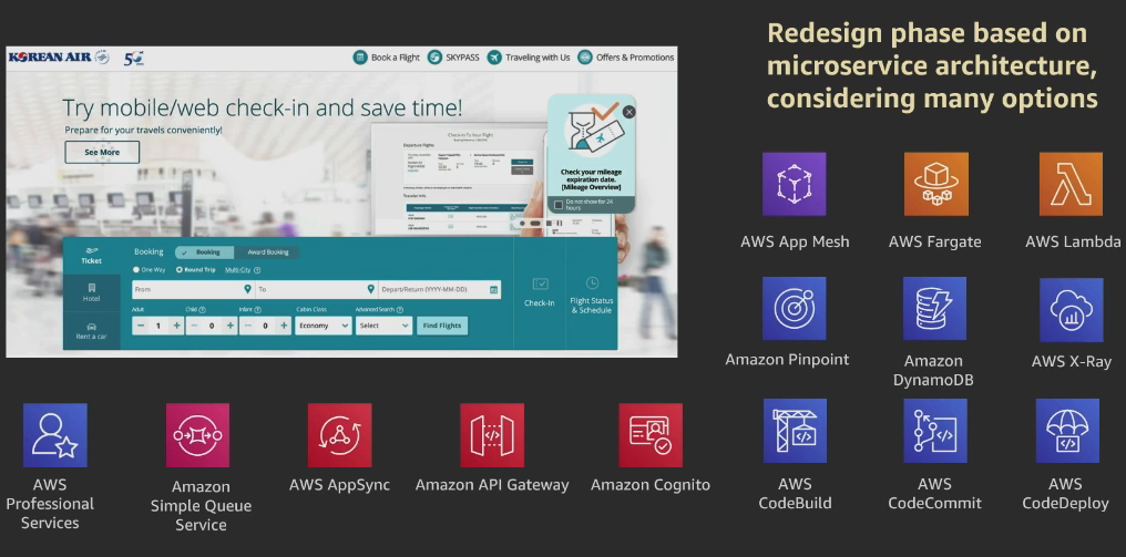 2단계는 클라우드 리플랫폼이다. 대한항공은 과거 20년 동안 아웃소싱 행태로 IT시스템과 데이터센터가 운영됐기 때문에 아키텍처를 비롯해 보안까지 처음부터 다시 설계되어야 했다. 더불어 향후 서비스 배포 과정에서 의존도를 낮추기 위해 클라우브 네이티브로 설계돼야 했다. 게다가 레퍼런스도 없었다.