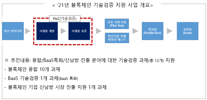 과학기술정보통신부와 정보통신산업진흥원은 ’2021년 블록체인 기술검증(PoC) 지원‘ 사업이 29일, 30일 이틀 동안 진행되는 착수보고회를 시작으로 본격적으로 추진된다고 29일 밝혔다.