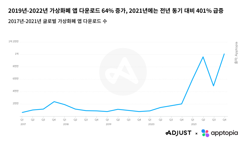 모바일 마케팅 애널리틱스 플랫폼 Adjust(애드저스트)와 앱 인텔리전스 회사 Apptopia(앱토피아)는 31일 모바일 마케터들을 위한 ‘Adjust 가상화폐 앱 가이드 2022’를 출간했다고 밝혔다.