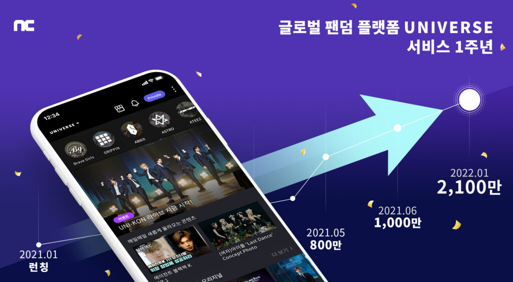 엔씨소프트(이하 엔씨)의 글로벌 팬덤 플랫폼 유니버스(UNIVERSE)가 출시 1주년을 기념해 지난 1년간의 성과를 공개했다.