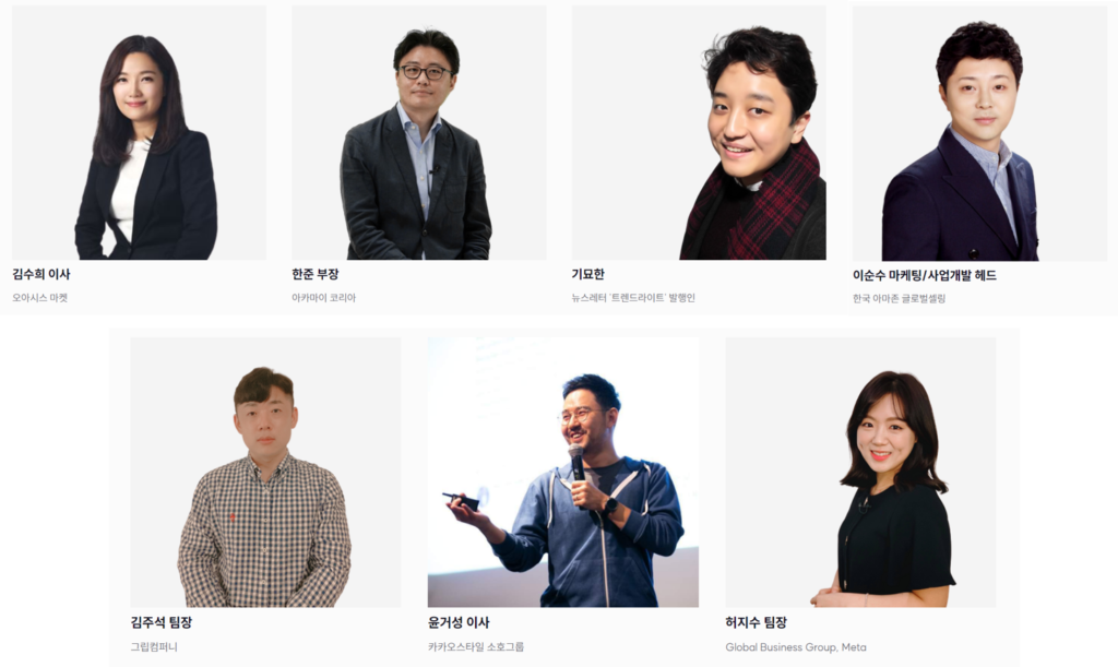 이날 행사에는 커머스 업게 유망 기업으로 떠오르고 있는 오아시스마켓, 그립컴퍼니, 카카오스타일, 카페24를 비롯해 메타, 아마존 등의 글로벌 빅테크 현업 마케팅 담당자들이 총출동한다.