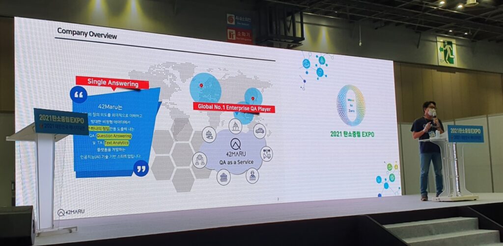 포티투마루는 지난 13일부터 15일까지 경기도 일산 킨텍스에서 개최된 2021 탄소중립 엑스포에 참가해 자사의 Answering AI 솔루션을 선보였다.