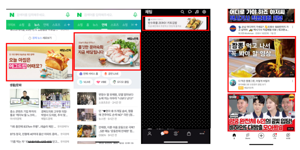 저에게 가장 많이 노출되는 광고 역시 배달의 민족인 것 같습니다.