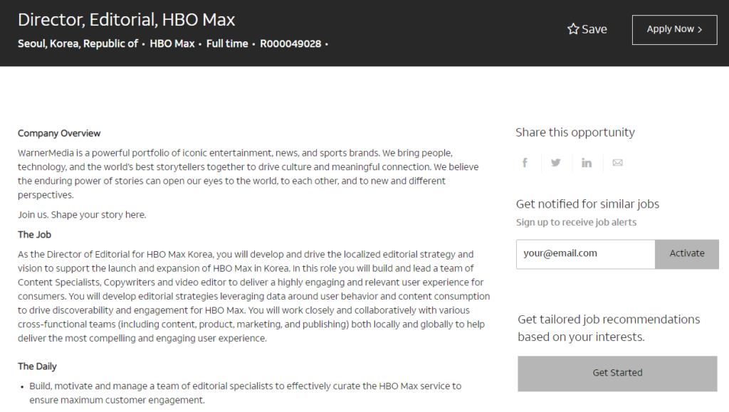 디즈니플러스, 애플TV플러스에 이어 미드 ‘왕좌의 게임’으로 유명한 HBO맥스도 한국 진출을 서두르고 있다. 이는 지난달 29일 링크드인에 대대적인 ‘HBO맥스 코리아’ 구인 공고를 통해 확실시되고 있다.