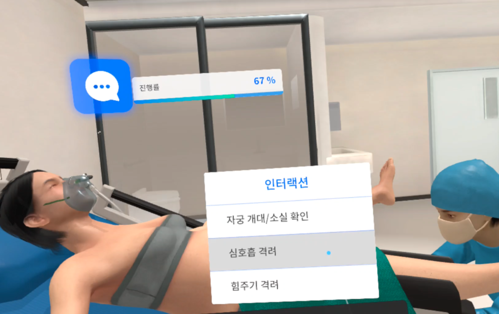 정상분만 간호 교육 콘텐츠는 ‘메타 퀘스트 2 (가상현실 헤드셋)’를 활용해 교육이 진행된다. 가상현실을 통해 학습자는 환자 상태를 진단하거나 간호술기 절차를 학습하고, 다양한 임상 상황에 맞는 의사결정을 실습할 수 있는 것도 특징이다. 특히 정상분만 간호 교육은 현실에서 실습 기회를 얻기 어려운 만큼, 가상 현실을 통한 정상분만 간호 교육이 현실적인 대안으로 기대를 모으고 있다.