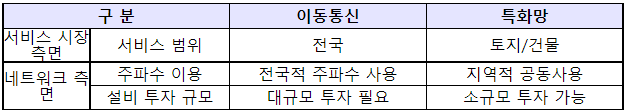 5G 이동통신 특화망은 건물, 공장 등에 특화된 서비스를 제공하는 맞춤형 망으로, 기존 5G와 달리 다양한 사업자가 제한된 지역에서 소규모 망 투자로 서비스를 제공하는 특징이 있다.