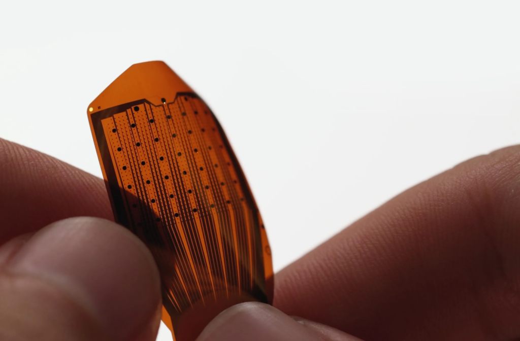 Layer 7-T의 특징은 크기와 수술 방식에 있다. 우표 한 장 크기의 얇은 필름 형태이며, 두개골에 1mm 미만의 절개만으로 삽입이 가능하다. 수술 소요 시간은 20분 이내다. FDA는 이 기기를 최대 30일간 이식해 사용하는 조건으로 허가했으며, 현재 미국 6개 의료기관에서 50명 이상을 대상으로 한 장기 연구가 진행 중이다. 초기 임상 참여자 6명에서 언어 신호를 80% 정확도로 감지한 결과도 보고됐다.