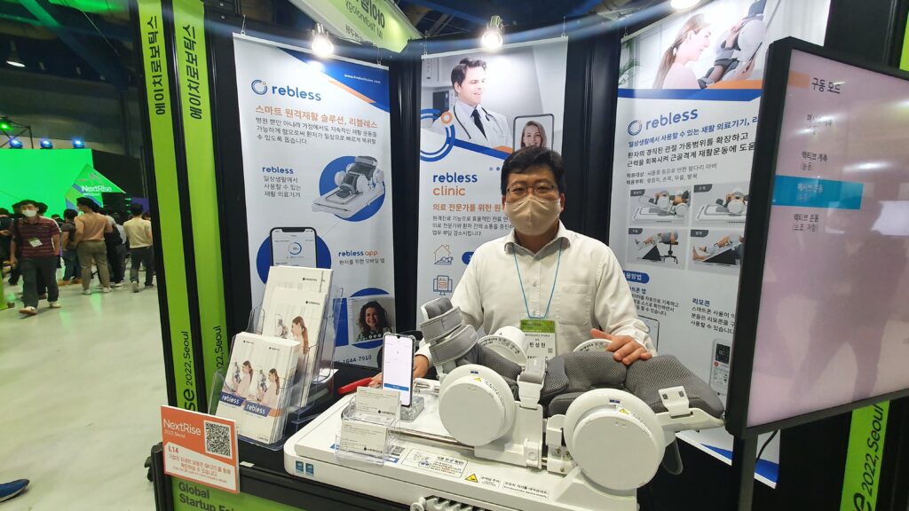 ‘일상생활에서 사용할 수 있는 의료기기’를 표방하는 에이치로보틱스의 리블레스(rebless)는 관절 질환으로 굳어진 팔과 다리 부위의 가동범위를 확장하고 근력을 회복시켜주는 전동식 정형용 운동장치다.