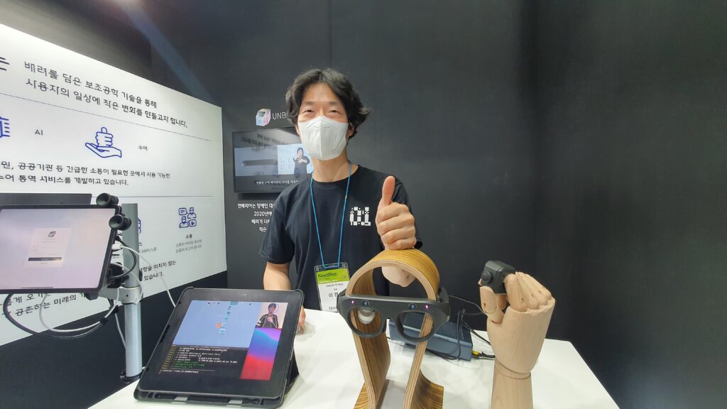 현장에서 만난 이강일 언배리어 대표는 기술 관련 미디어 아트 작가 출신으로 수어 관련 프로젝트를 진행했던 것이 계기가 돼 창업을 하게 됐다고 한다.