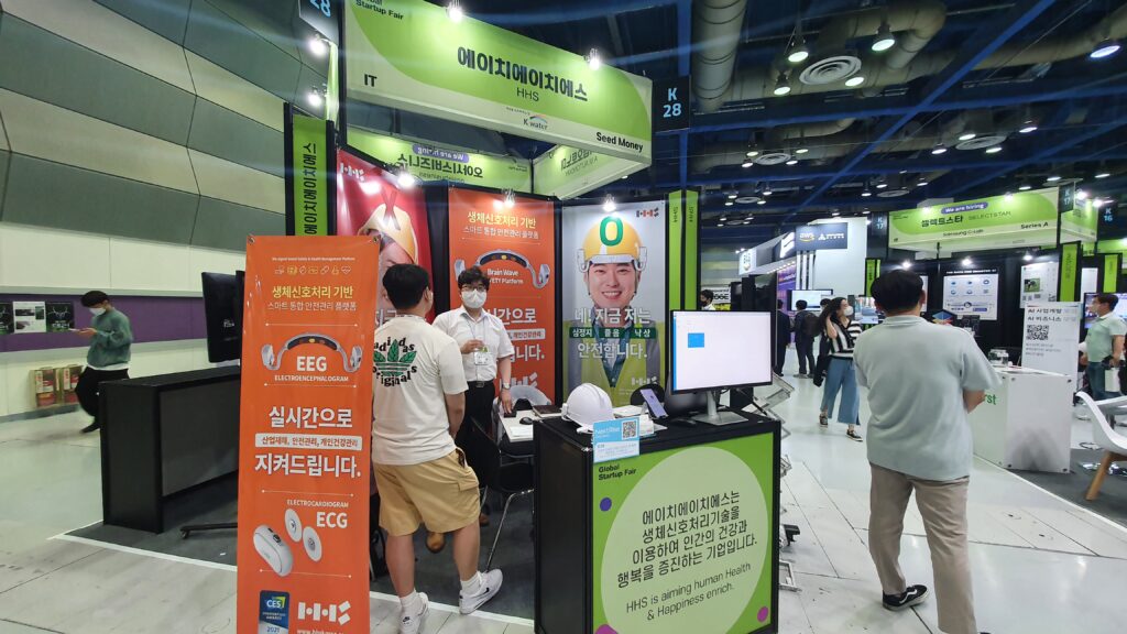 에이치에이치에스(HHS)는 생체신호처리기술기반 스마트 안전관리시스템을 개발한 스타트업이다. 이는 산업 현장 근로자의 상태를 실시간으로 측정하는 생체 신호 처리 장치 모듈인데, 작업자의 상태를 측정한 후 위험 상황을 실시간으로 모니터링, 안전 관리자에게 알려 즉각 대응하게 하고 있다.