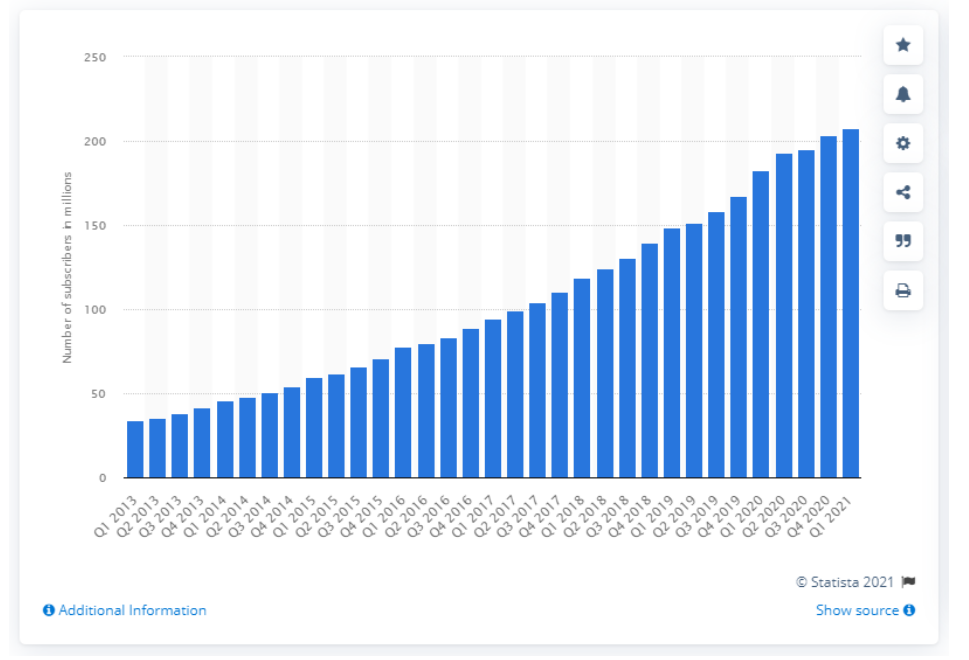 ※ 넷플릭스 글로벌 구독자에 따른 그래프를 더욱 자세하게 보시고 싶으시면 아래 링크를 참고해주세요.