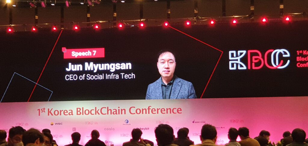 이어 무대에 선 전명산 소셜인프라테크 대표는 ‘디파이, NFT 이후 트렌드는?’이라는 주제로 연설을 시작했다. 소셜인프라테크는 올 여름 프로토콘이라는 차세대 메인넷 출시를 목표로 하고 있는 블록체인 기술 기반 기업이다.
