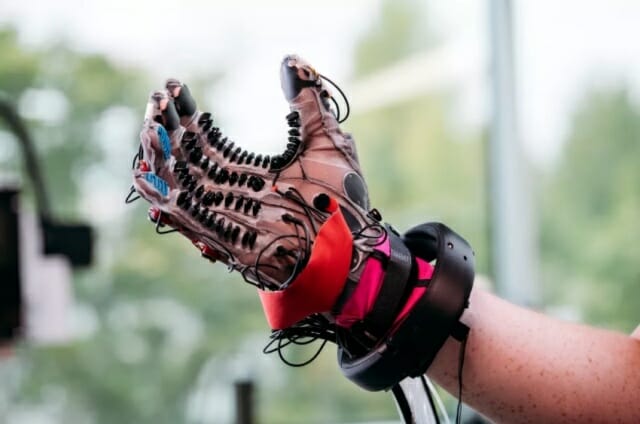 또한 메타(구 페이스북)이 얼마 전 공개한 햅틱 장갑은 디지털 공간을 손으로 직접 느낄 수 있도록 하는 제품이다. 메타의 리얼리티랩스가 개발한 햅틱 장갑은 액추에이터로 알려진 약 15개의 플라스틱 팽창식 에어패드가 손바닥과 손가락 전체에 압착된다. 장갑을 끼고 증강현실 세계에 들어가면, 제어 시스템이 장갑 패드의 팽창 수준을 조정해 각기 다른 부분에 압력을 가하는 방식이다. 이런 감각은 시각, 청각 신호와 함께 작동하며 물리적으로 어떤 것을 만지는 느낌을 준다.