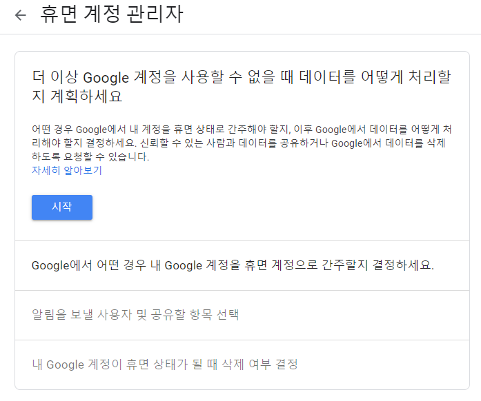 구글은 사전에 계정 주인이 휴면 계정 관리자를 지정할 수 있도록 하고 있다.