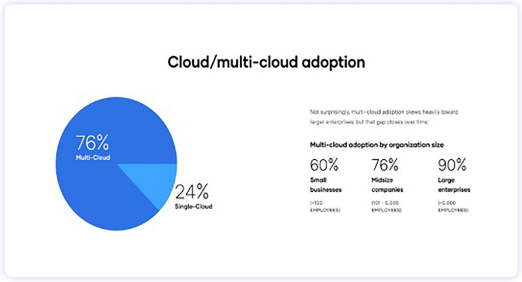 마찬가지로 인프라 자동화 소프트웨어 업체 하시코프 HashiCorp는 대기업의 90% 이상, 중견 기업의 76% 이상이 이미 멀티 클라우드를 도입하여 비즈니스 가치 제고에 나섰다고 밝혔다. (HashiCorp, 2021)