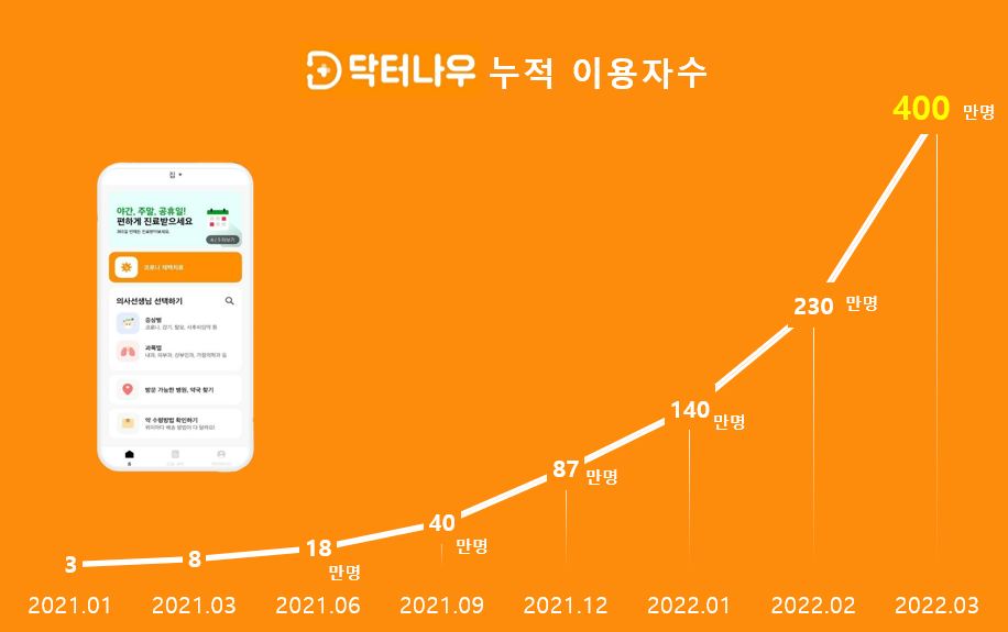 올해 4월 기준 누적 이용자 400만명을 돌파했으며, 월간 이용자 수만 5만명 수준이다. 현재 제휴 중인 의료기관만 900여개에 달한다. 서비스 초기에는 2030세대가 주요 이용자였으나, 최근에는 40대 이상 이용자가 전체 사용자의 30%를 차지하는 등 연령층이 확장하고 있다.