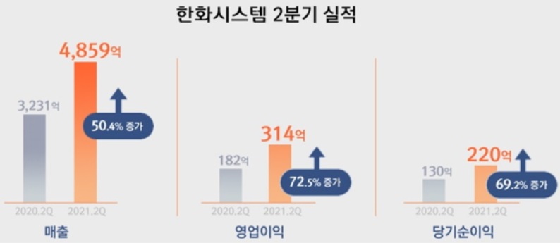 공정위의 사정권에서 벗어나자, 한화시스템은 SI 사업을 점점 늘려갔다. 2020년 ICT 부문 매출은 3120억 수준이지만, 2021년 상반기 이미 약 2540억원을 채웠다. 한화시스템이 밝힌 ICT 수주 잔고인 약 3000억원을 감안하면 연말 5000억원을 달성할 것을 예상된다.