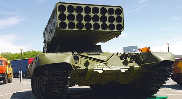 러시아군은 지난달 24일 우크라이나를 침공해 금지무기인 진공폭탄을 사용한 것으로 알려졌다. 사진은 ‘모든 폭탄의 아버지’로 불리는 진공폭탄 발사장치인 TOS-1 로켓 발사시스템. 우크라이나 영토에서 이 시스템들이 발견됐다. (사진=rferl.org)