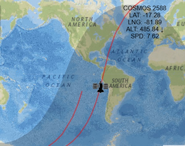 이 회사는 “코스모스 2588호는 니벨리르 군용 정찰 위성으로, 운동 에너지 무기(레이저 같은)로 추정되는 무기를 탑재한 것으로 추정된다”고 말했다.