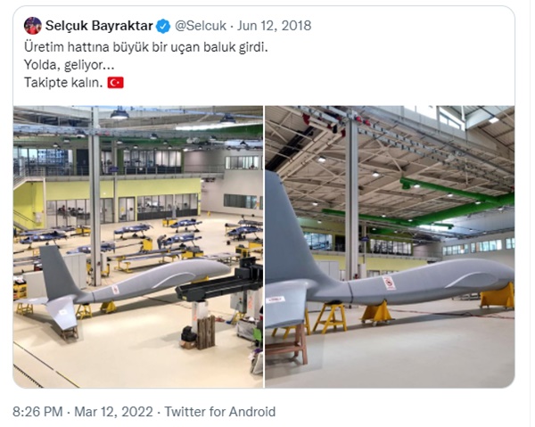 제조사 바이카르의 셀주크 바이락타르 최고기술책임자(CTO)는 트위터에서 “3년 반 만에 더 크고 민첩한 물고기가 생산 라인에 들어왔다”고 트위터를 통해 말했다.