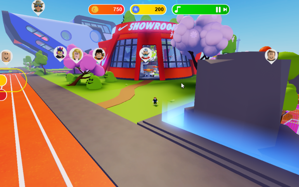나이키가 로블록스에 만든 ‘나이키랜드’는 오리건주 나이키 본사를 본뜬 것으로 로블록스 모든 사용자에게 개방돼 있다. 여기서 사용자들은 자신의 아바타를 통해 나이키 디지털 신발과 의류를 구입해 입을 수 있으며, 다른 사용자들과 피구, 술래잡기 등의 게임을 즐길 수 있다. 나이키의 나이키랜드 구상은 여기서 그치지 않는다. 향후 월드컵이나 슈퍼볼 같은 글로벌 스포츠 이벤트를 가상세계에서 개최하겠다는 것이다.