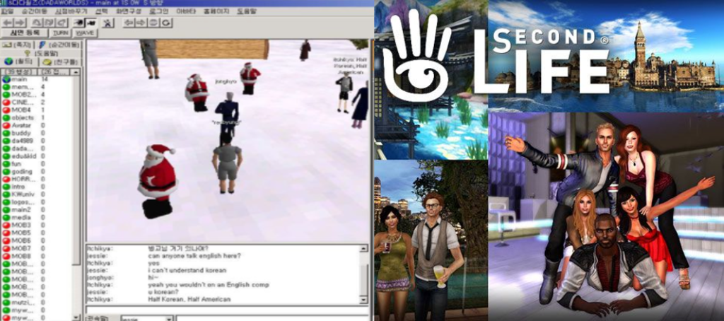 다시 우리나라에서 메타버스 열풍이 부는 이유를 찾아보자면 그 기원을 따질 필요가 있다. 메타버스를 처음 시도한 것이 미국과 우리나라이기 때문이다. 이미 2002년 우리나라에서는 최초의 메타버스인 ‘다다월즈(Dadaworlds)’가 나온 바 있다. 미국의 ‘액티브월드’를 가지고 와 최초로 상용화 한 것이라고 한다. 당시 10만명이 넘을 정도로 큰 호응을 얻었고, 삼성증권, 삼성전자, 외환카드 등 많은 업체가 비용을 지불하고 입점 하기도 했다. 미국에서 등장한 ‘세컨드라이프’는 이 다다월드에 영향을 받아 생겨난 것이다.
