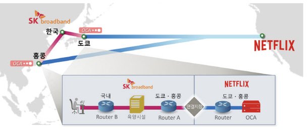 또 OCA의 경우도 넷플릭스 자체 CDN(콘텐츠 전송네트워크)의 일종이라는 것이 SK브로드밴드의 논리다. 이 경우 현 인터넷 서비스 구조에서 많은 CP들이 CDN 업체를 통해 ISP에 망을 연결하고, CDN은 그에 대한 망 이용 대가를 ISP에 지급하고 있다는 점에서, 넷플릭스 역시 망 이용료를 지급해야 한다는 논리가 성립된다.
