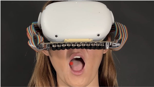 미국 카네기멜론대 연구진이 마침내 오큘러스의 퀘스트2 헤드셋에 탑재된 하드웨어 모듈로 답했다. 영화와 반드시 똑 같다고는 할 수 없겠지만 입과 입술, 이빨은 물론 혀까지 키스 감각을 전달하는 실시간 햅틱(촉각) 기술 기반 VR 헤드셋이다.