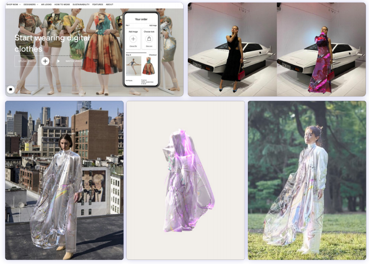 네덜란드의 스타트업 ‘파브리칸트’는 아예 제품 기획자가 증강현실(AR) 아티스트이며, 공식 웹사이트에도 VR, AR 전문가 채용을 공고할 정도로 가상 디자인에 집중한다. 이 회사 수석 디자이너가 “물리적 공간에 얽매이지 않은 미래형 옷을 만들 계획”이라고 밝혔을 정도다. 드레스-X가 저렴한 비용으로 가상의 ‘기성복’ 디자인을 판매한다면, 파브리칸트는 가상의 ‘맞춤 의류’를 옥션 방식으로 판매한다. 그 중 2020년 6월에 판매된 드레스 ‘Iridescence’는 판매가가 9,500달러(원화 약 1천1백만원)에 알려져 전세계 패션시장을 놀라게 한 바 있다.