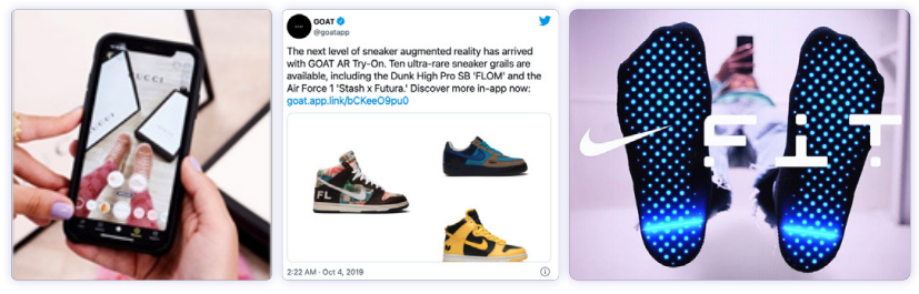 미국 운동화 전문몰 ‘고트(Goat)’사의 AR 피팅 서비스도 주목할 만하다. 구찌와 비슷한 시기에 선보인 고트의 피팅 서비스는 아직 미출시된 신제품이나 고가의 리미티드 한정품 등을 미리 신어볼 수 있다는 점에 주력한다 (R.Williams, Marketing Dive, 2019.10.4).