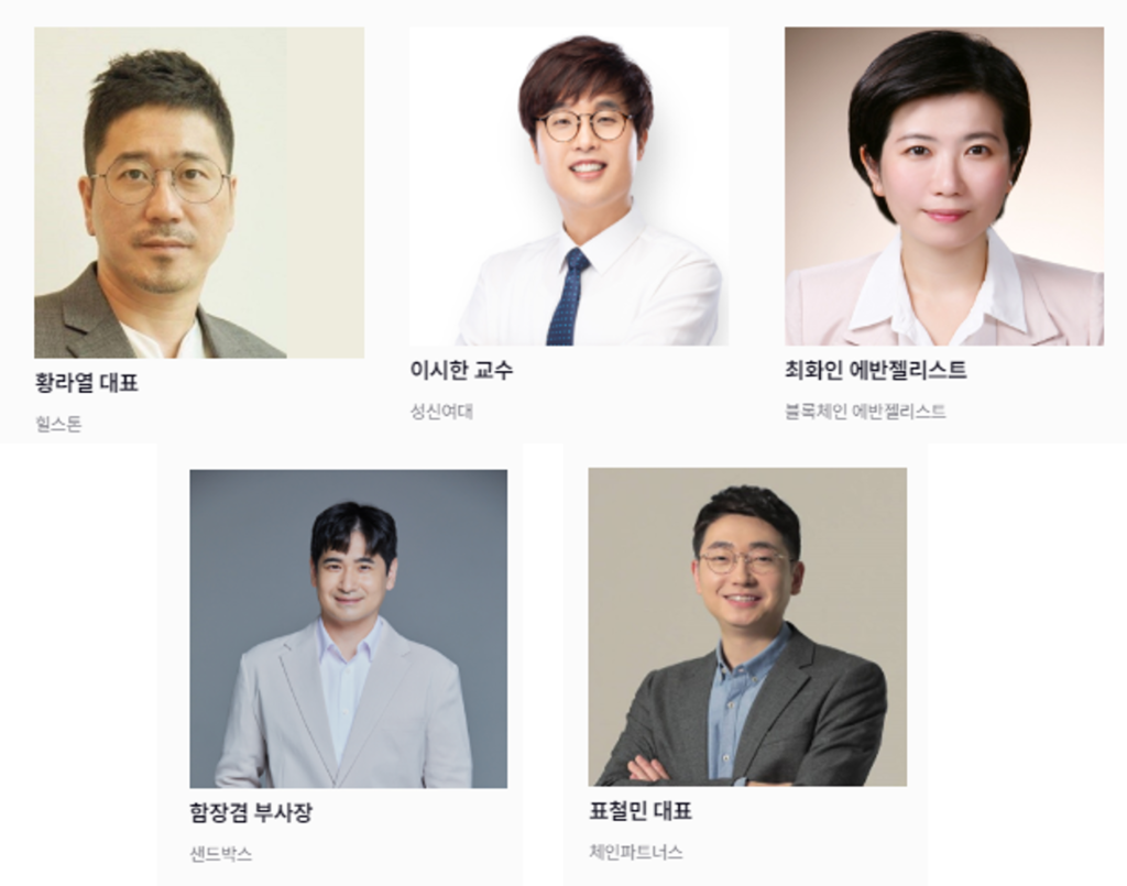 이후 이시한 성신여대교수가 ‘NFT의 비즈니스적 적용과 앞으로의 전망’, 최화인 뮤온오프 파운더 에반젤리스트가 ‘메타버스 확장을 위한 과제’, 한장겸 샌드박스네트워크 부사장이 ‘Web3.0 생태계와 NFT’, 표철민 체인파트너스 대표가 ‘Web3 시대 최고의 킬러 앱: 디지털자산 환전’를 주제로 연이어 발표에 나섰다.