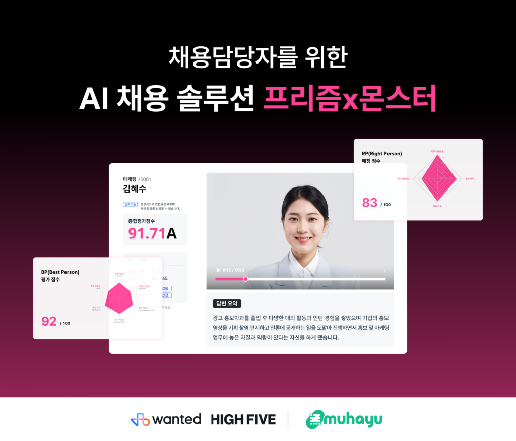김희수 무하유 부사장은 "무하유는 프리즘과 몬스터를 통해 채용 업무를 효율화하고, 적합도를 검증하고 예측해 최적의 인재를 채용할 수 있도록 돕고 있다"며 "모든 기업이 원하는 인재를 확보하고 영입할 수 있도록 더욱 고도화된 AI 채용 솔루션을 선보일 예정"이라고 전했다.