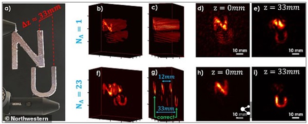 이들은 “이것은 다른 산란 시나리오에서는 홀로그램 영상에 맞춰질 수 있으며, 만약 물체의 전체 빛 장을 홀로그램에 포착할 수 있다면 3D 형태를 완전히 재구성할 수 있다. 우리는 일반적인 광파 대신 합성파로 홀로그램 이미지처리를 한다”고 설명했다.