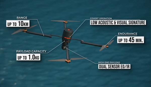 이스라엘이 세계 최초로 잠수함에서 어뢰처럼 발사할 수 있는 쿼드콥터 드론을 개발했다. 캡슐에 들어있는 무인항공기(드론)를 해수면에 쏘아올린 후 여기서 다시 공중으로 발사하는 방식이다. 해수면에 최장 24시간이나 떠있다가 다시 공중으로 발사될 수도 있는 혁신적 잠수함 발사형 ‘쿼드콥터’ 드론이다.