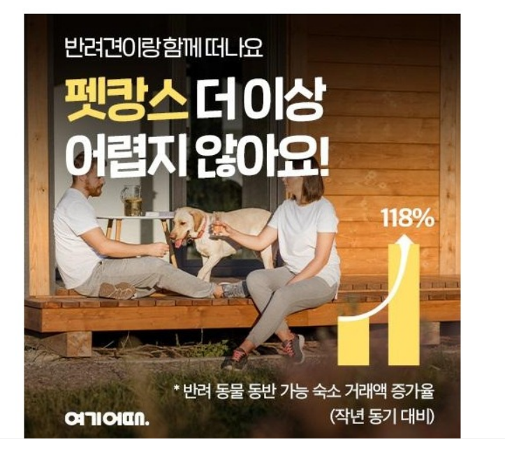 여기어때는 "반려동물과 함께 떠나는 여행의 가치를 높게 평가하는 소비자들이 지갑을 열었다"고 설명했스빈다.