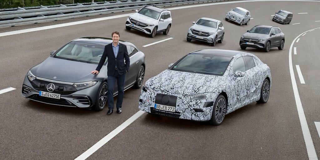 S-클래스급 전기차 EQS의 경우 순수 전기 아키텍처를 기반으로 했고, 이를 바탕으로 E클래스급 전기차 EQE, 그리고 SUV 버전의 EQE 및 EQS가 추가로 나온다고 해요.