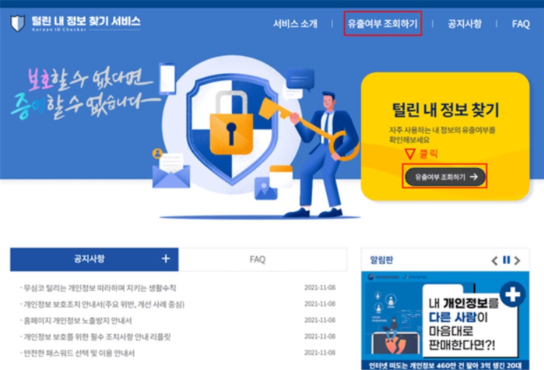 다행스럽게도 최근 개인정보보호위원회와 한국인터넷진흥원이 이 문제 해결을 위해 적극 나섰다. 16일 오전 10시부터 자신의 개인정보가 유출됐는지 확인할 수 있는 '털린 내 정보 찾기 서비스'(https://kidc.eprivacy.go.kr)를 오픈하기로 한 것이다.