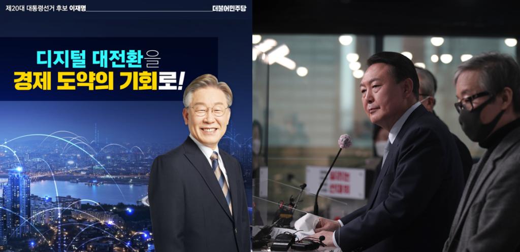 대한민국의 미래를 좌우할 신기술, 테크, 산업 분야의 공약도 연이어졌다. 이재명 더불어민주당 대선후보의 경우 일찌감치 ‘메타정부’를 선언하고 발빠르게 트렌드를 반영한 공약을 제시했고, 윤석열 국민의힘 후보는 ‘디지털 플랫폼 정부’를 강조하며 맞불을 놨다.