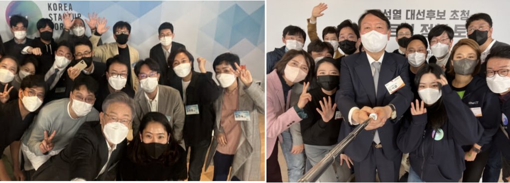 반면 윤 후보는 스타트업의 성장을 위한 전폭적 지원에 방점을 찍었다. 버락 오바마 전 미국 대통령의 '스타트업 아메리카' 전략을 통해 미국 스타트업이 경제 성장 동력이 됐던 것처럼 스타트업 성장을 위해 국가가 적극 지원해야 한다는 것이다. 또 혁신 기업은 빠르게 성장해야 하고, 이 과정에서 발생하는 실패 리스크에 대해서는 정부가 지원해 줘야 한다는 지론을 폈다.