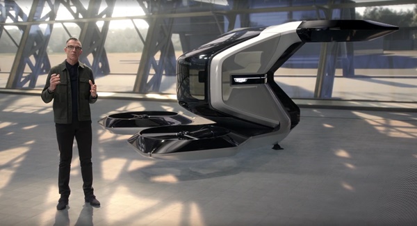 마이클 심코 GM 글로벌 디자인 담당 부사장은 자사의 캐딜락 eVTOL 개념에 대해 “수직 이착륙 드론, 또는 VTOL은 GM의 공중 이동성에 대한 우리의 첫 번째 시도”라고 밝혔다.