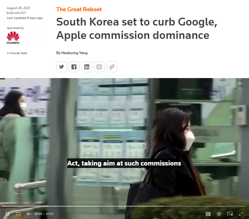 로이터 통신은 "이미 구글과 애플은 미국 내에서도 유사한 법안 논의에 직면한 상황"이라며 "한국 입법이 법안 논의의 물꼬를 트게 될 수 있다"고 전망했다.