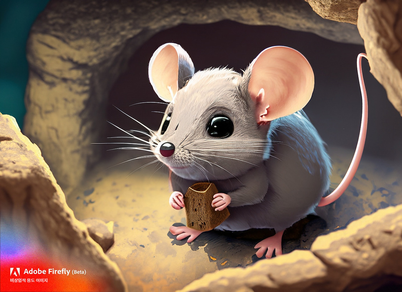 이정도면 <용감한 생쥐, 마일로> 이야기의 삽화로 가능할까요? 출처 : Adobe Firefly