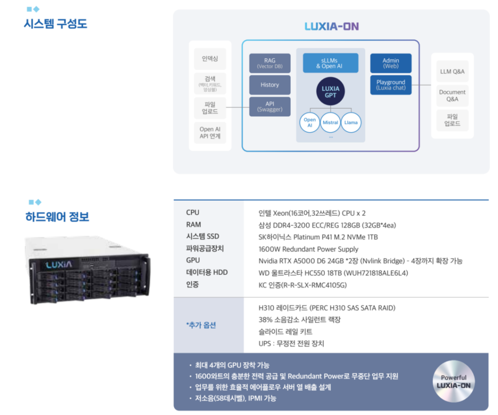하드웨어 일체형 생성형 AI 어플라이언스 ‘루시아 온(LUXIA-ON)
