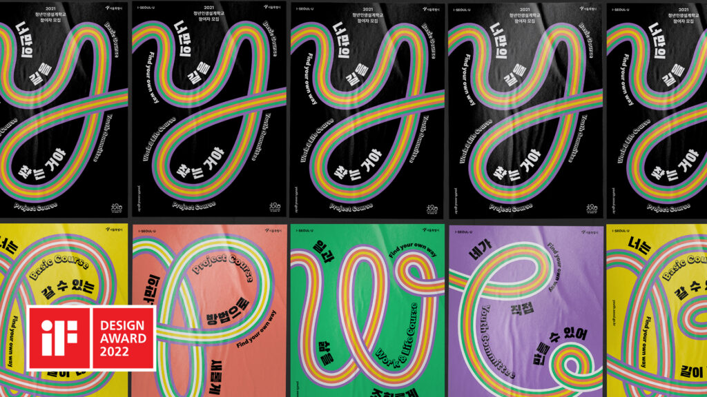 본상을 수상한 ‘서울시평생교육진흥원 2021 청년인생설계학교’는 서울에서 활동하는 청년들이 인생의 다양한 경로를 탐구하도록 돕는 공공사업으로, 치열한 경쟁 사회 속에서 청년들이 주체성을 찾아가는 여정을 시각화한 것이 특징이다. 다양하게 도전하는 청년들을 나타내는 다채로운 트랙이 커브를 그리며 방향을 전환하고 뻗어 나가는 형태로 키 비주얼을 개발해 사업 참여도와 인지도를 높였다.