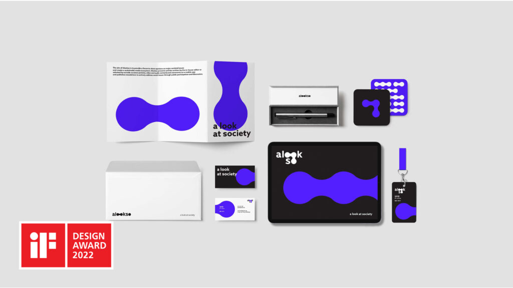 디지털 미디어 플랫폼 alookso는 중요한 의제에 대해 다양한 의견을 나누는 공론장을 구축하고, 지속가능한 미디어 생태계를 만드는 스타트업이다. 속보 대신 해설과 분석, 현상보다 부분과 전체를 아우르며 시민과 함께 성장하는 미디어의 방향성을 브랜딩에 녹였다. 시민들의 의견을 모아 정치와 언론이 말하지 않는 더 나은 미래를 이야기하는 곳으로 심볼의 이미지에 ‘얼룩 속에 가려진 진실’과 그 진실에 접근하고자 하는 잠금 해제의 ‘제스처’를 표현한 것이 특징이다.