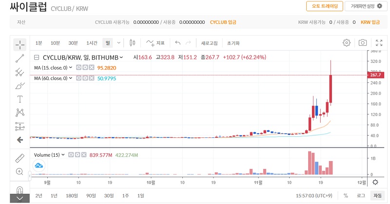 그 사이 싸이월드제트는 자사의 이사진이 대표로 있는 MCI 재단과 코인사업을 시작했는데, 그 결과 MCI 재단의 가상화폐 'MCI코인'을 리브랜딩한 싸이클럽이 나왔다. 초기에는 이를 바라보는 시각이 곱지 않았지만, 최근 NFT마켓플레이스 출시 소식을 알리면서 급상승을 하고 있다. 불과 1주일 전인 15일만 해도 싸이클럽의 가격은 47.9원이었는데, 22일 오후 3시 30분 기준 가격은 한때 310원을 상회하며 폭등을 이어가고 있다.